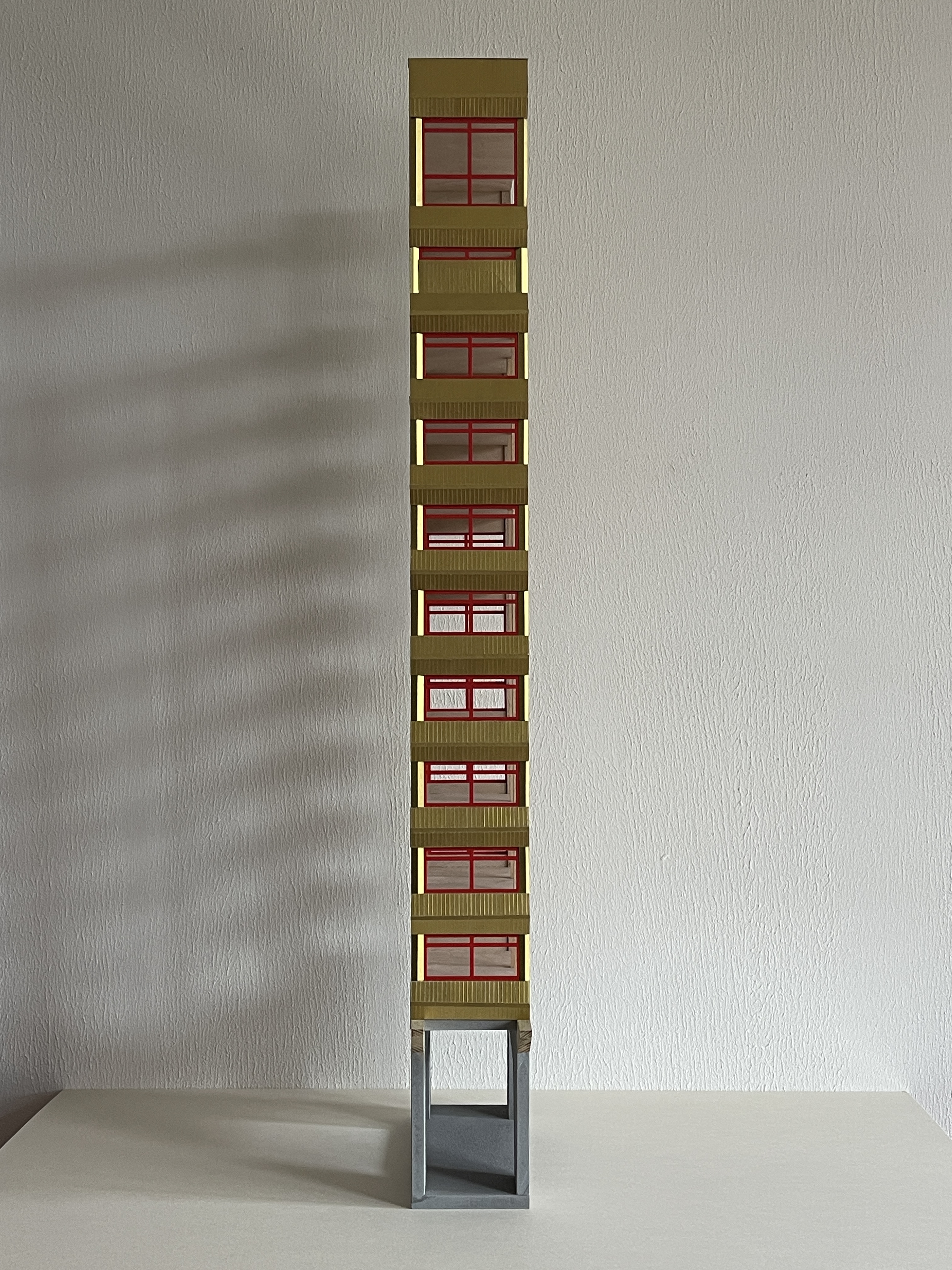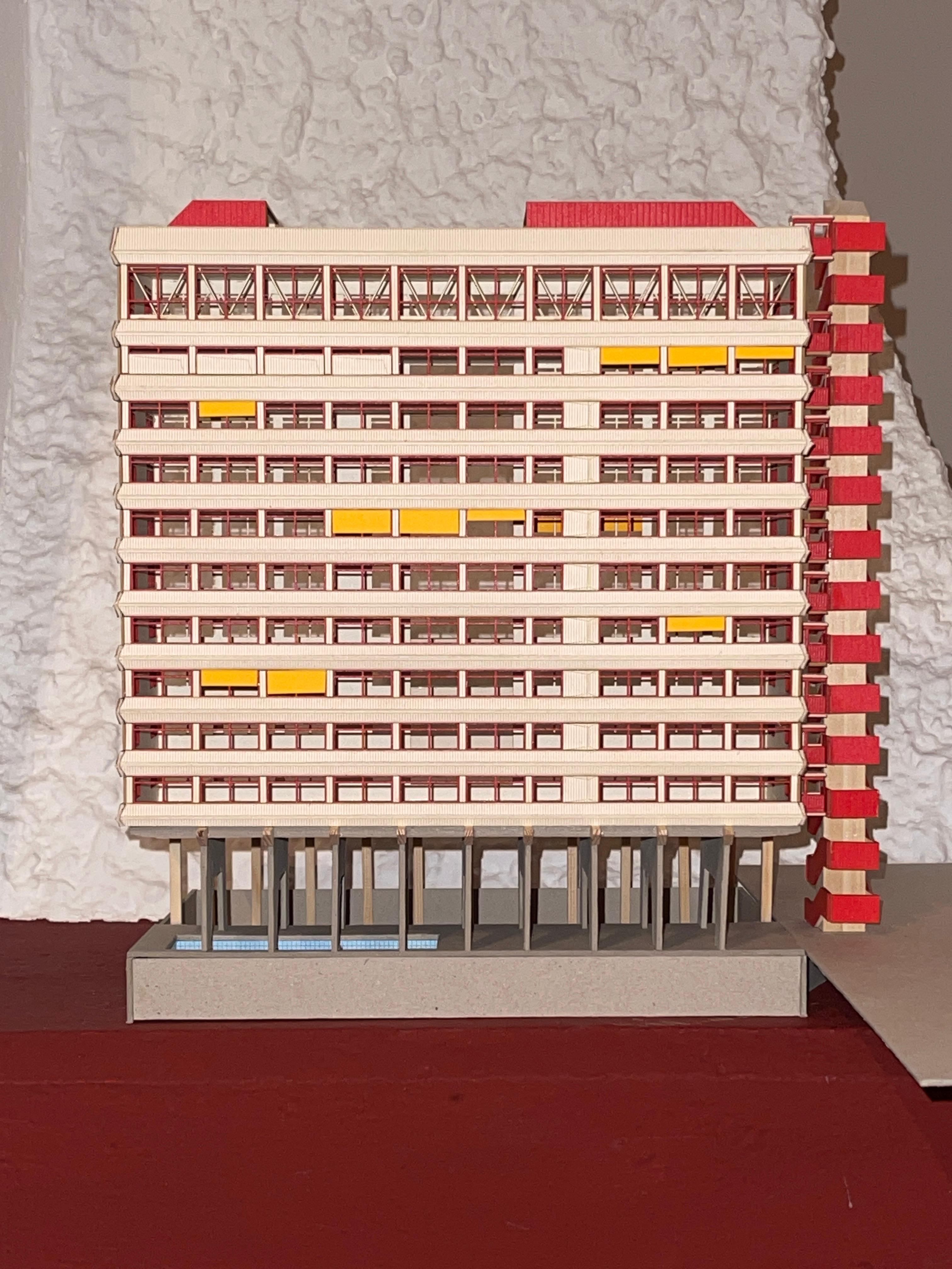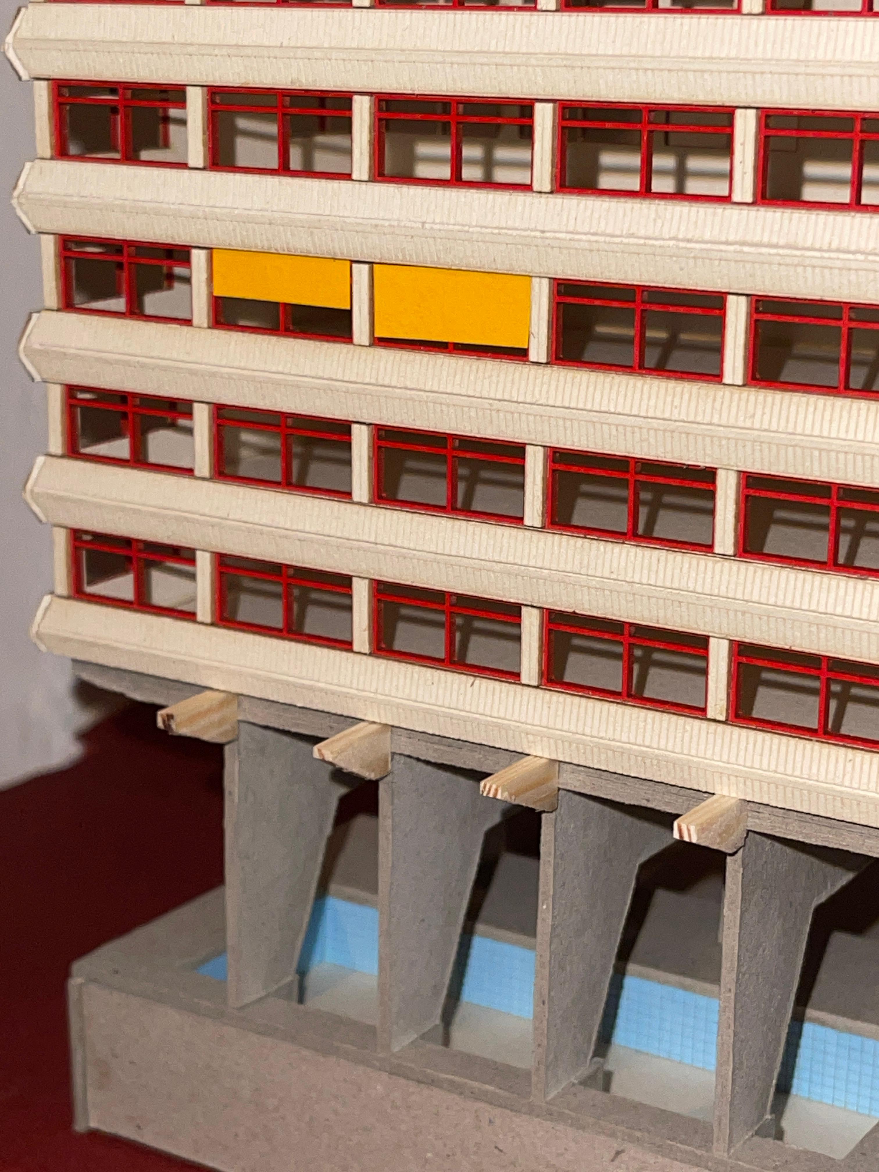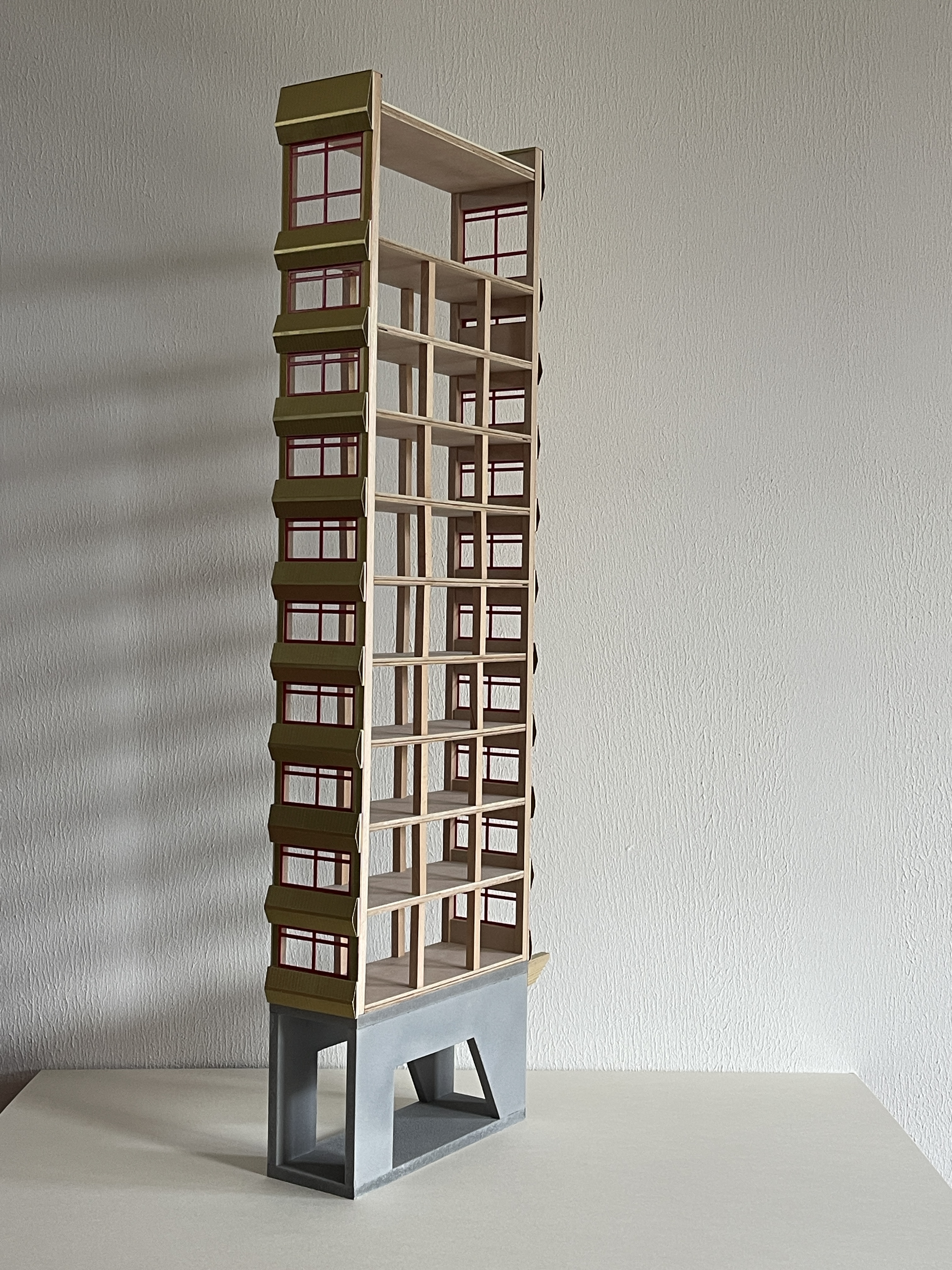 eine schule wird in mainz kastell am rheinufer gebaut. das hochhaus mit stahlbeton tragwerk und brettsperrholz wänden bietet beim lernen einen blick auf die containerschiffe, die kräne, ein naturschutzgebiet, ein weizenfeld und die stadt. das gebäude erhebt sich auf stelzen über die sporthalle und hat ein schwimmbecken im erdgeschoss